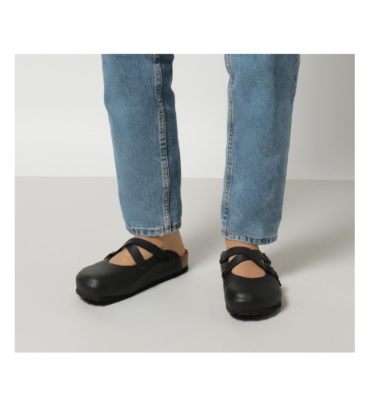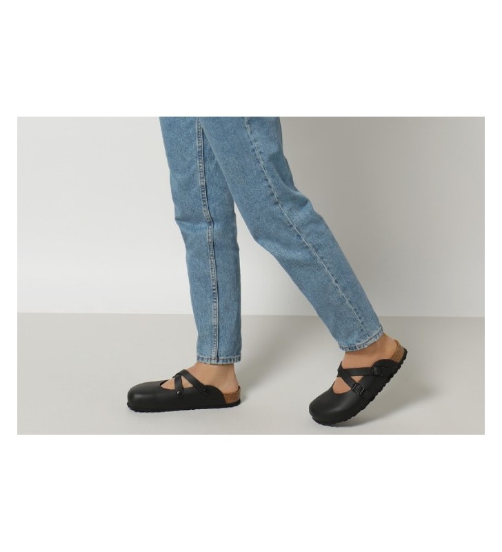 Il BIRKENSTOCK Dorian è un sabot nel classico design Mary Jane, con cinturini incrociati e il leggendario comfort dell'originale plantare in sughero e lattice. La tomaia è in materiale sintetico Birko-Flor® dermoaffine e resistente.