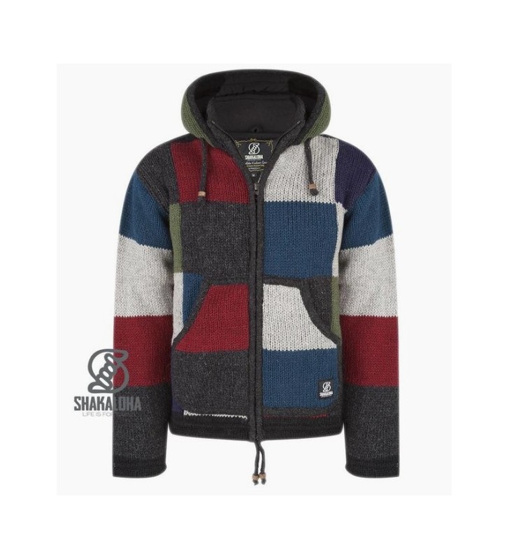 Caldo gilet da uomo con motivo patchwork caratterizzato da diverse zone di colori naturali, tra cui beige, marrone chiaro, antracite e grigio chiaro. Il gilet ha un cappuccio fisso con collo interno alto ed è completamente foderato in pile, che copre corpo, braccia, cappuccio e tasche. Questo caldo gilet ha tasche laterali e una tasca interna chiudibile, e le cerniere sono prodotte da YKK, garantendo una qualità impeccabile. Questo gilet meravigliosamente caldo può essere indossato come giacca in inverno, ma è anche molto comodo nelle fresche giornate estive. Disponibile nelle taglie dalla S alla 3XL e in diverse combinazioni di colori, sia per uomo che per donna. Grazie all'uso intelligente della fodera in pile, la lana non irrita mai la pelle. I gilet Shakaloha sono realizzati al 100% in lana di pecora neozelandese e sono prodotti in Nepal nel rispetto degli animali e dei lavoratori. I gilet possono essere lavati con un po' di detersivo per lana, con un ciclo per lana a 30 gradi.