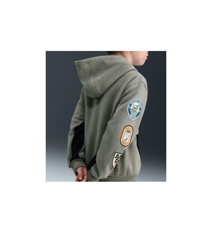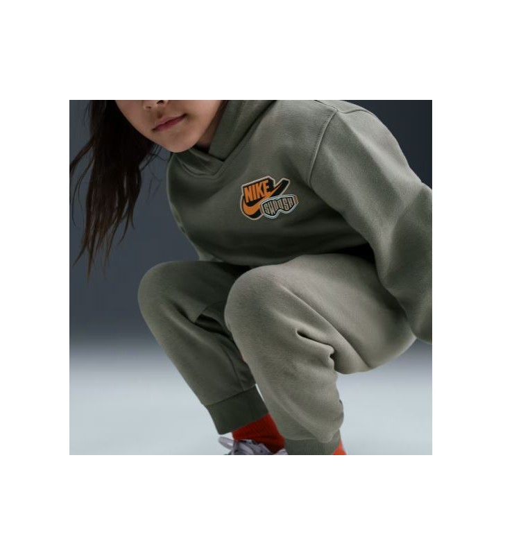 Valorizza senza sforzo il tuo piccolo avventuriero con questo comodo set di due pezzi, realizzato in morbido tessuto in pile. La felpa con cappuccio pullover rilassata è abbastanza spaziosa da poter essere indossata sopra una maglietta o una canotta e i pantaloni abbinati hanno una cintura elasticizzata per una vestibilità comoda, mentre le gambe affusolate mettono in risalto le loro Nike.